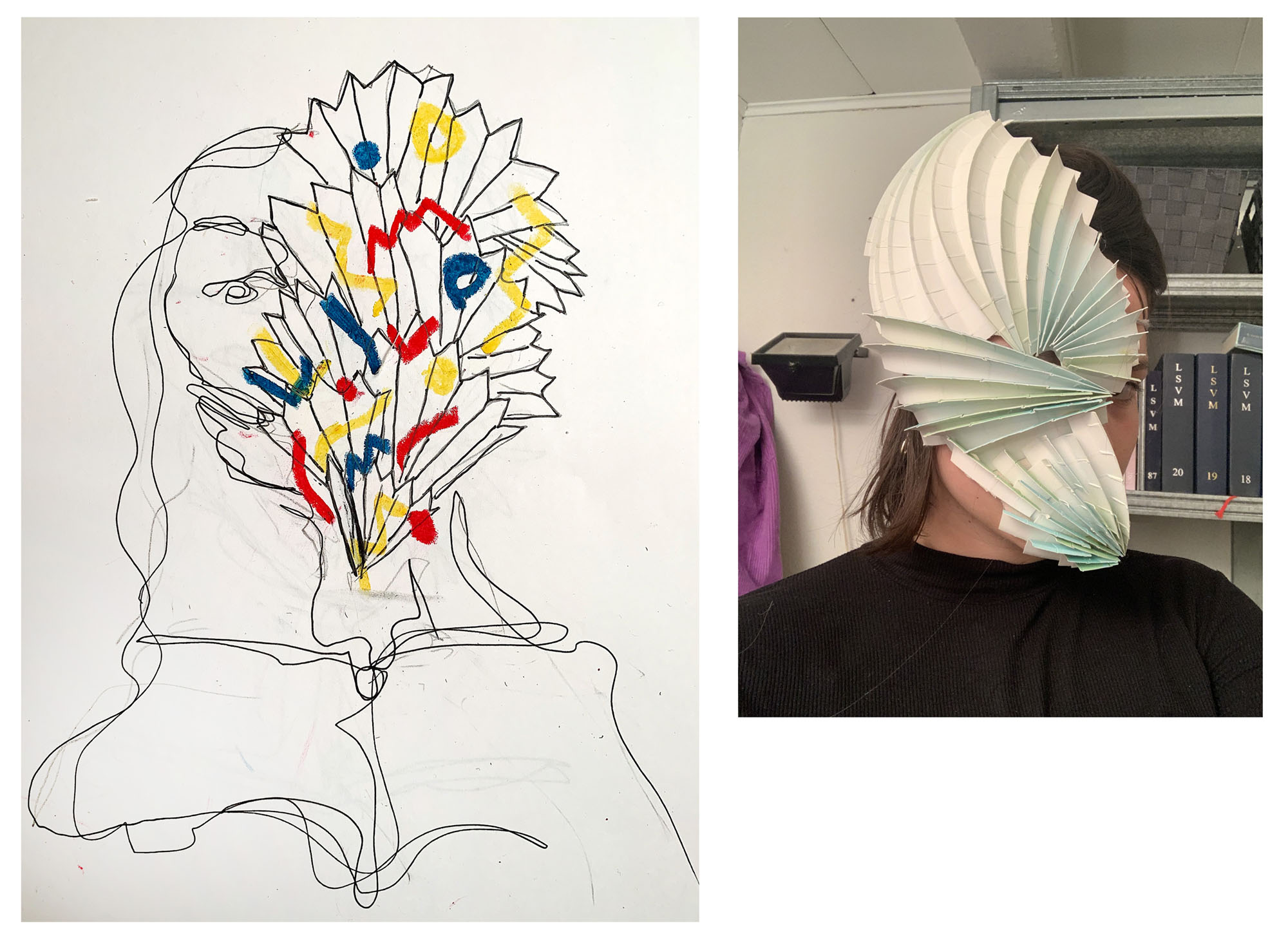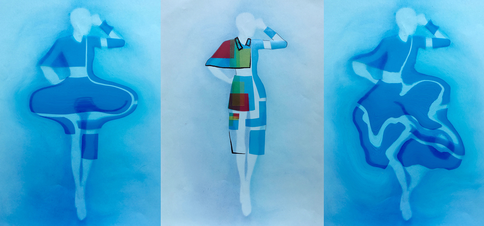 ‘The character I created for this design was a makeup artist. The blue outline on the left side of …